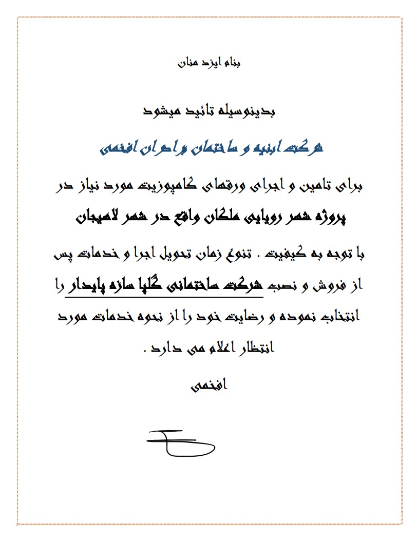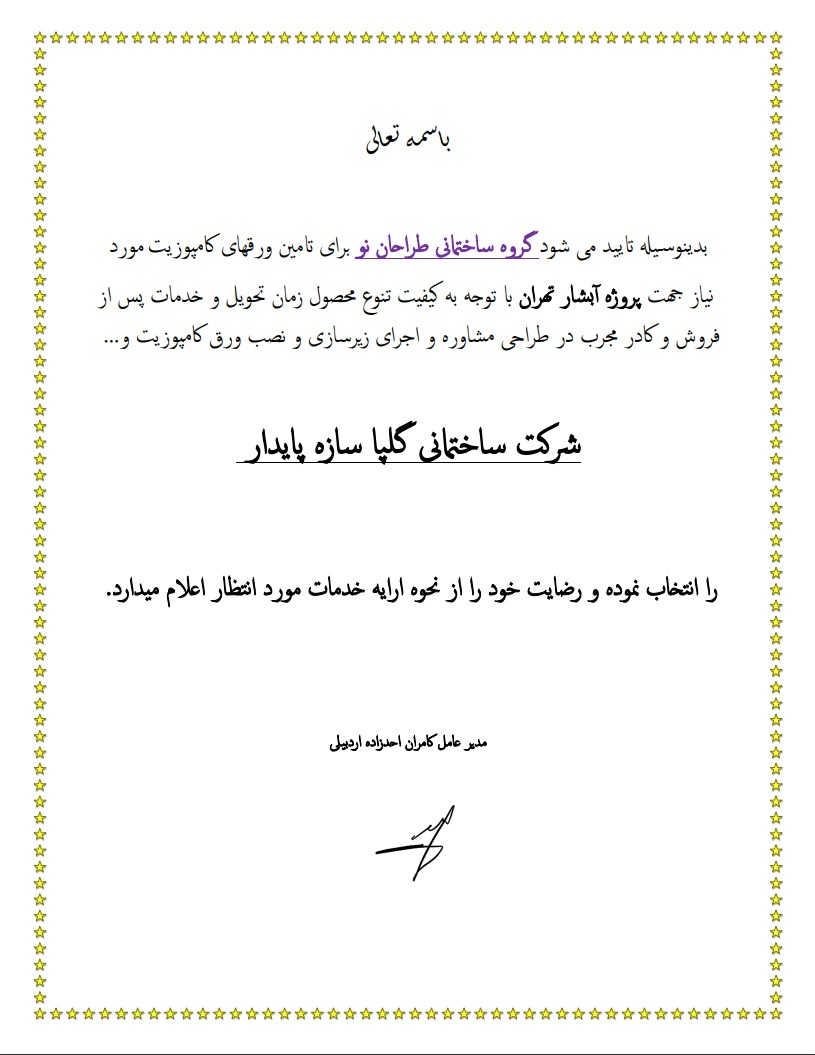 رضایت نامه های گلپا سازه پایدار