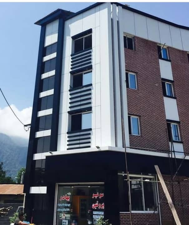 خارجی این نما دارای یک پوشش آستر اپوکسی رزین و یک لایه PVDF به منظور تثبیت رنگ است. بر روی سطح